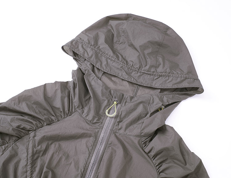 This lightweight windproof jacket seamlessly blends style and function. Designed for versatility, the drawstring and buttons allow you to adjust and fold the hem for easier riding, while the length and silhouette can be tailored to suit your needs. It also comes with a compact 16x25 cm storage bag, making it easy to pack and carry the entire garment wherever you go.